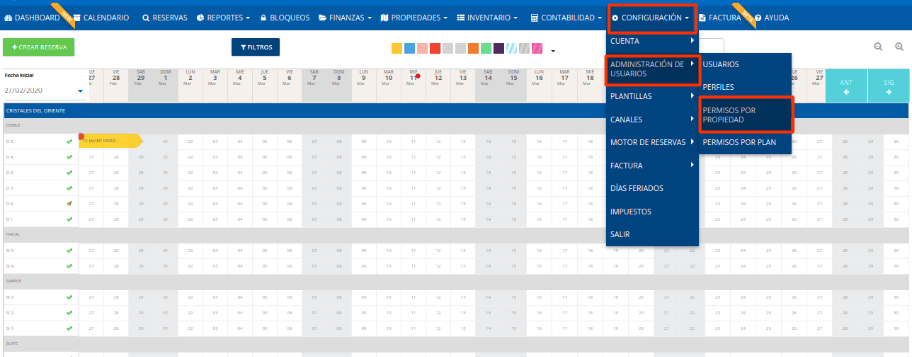 Accede desde “Configuración” →“Administración de Usuarios" →“Permisos por propiedad"